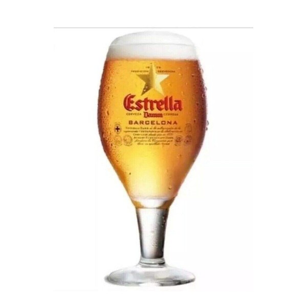 - 1 Imported Estrella Damm Glass Chalice, Rare. 330 mil. Made by RC. No Longer Manufactured.