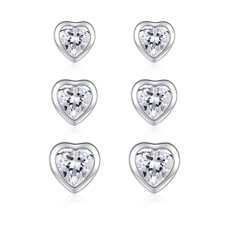 Estrellique 925 Sterling Silver Stud Earrings, Silver Small Zirconia Stud Earring, 3 Pairs Stud Earrings Set for Lady Girl, 4/5/6mm Heart Stud Earrings, Hypoallergenic Cartilage Sleeping Stud Earrings