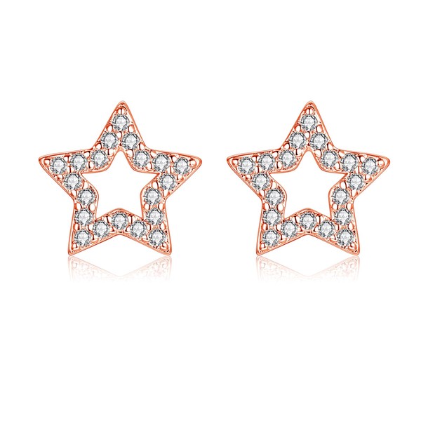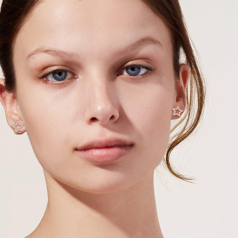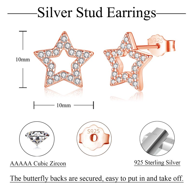 - Stylish design: 925 sterling silver stud earrings are shiny, simple and elegant in design. These silver stud earrings for women have an openwork star design. High-quality, sparkling zirconia are embedded in the silver earrings and make them glitter in the sunlight. The classic rose gold earrings also contribute to your glamour. Our 925 silver stud earrings match most of your outfits and are ideal for everyday work