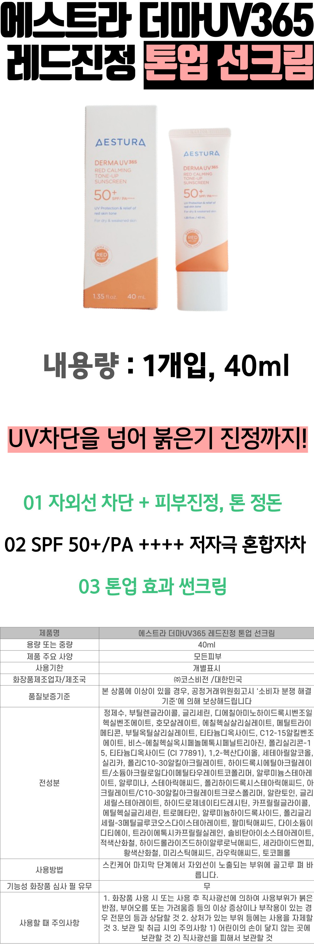 Estura Tone-Up Sun Cream Derma UV 365 Makeup Base Fade-Free UV Protection SPF50 Low-irritation Women's Middle-aged Women / 에스트라 톤업 선 크림 더마 uv 365 메이크업 베이스 파데프리 자외선 차단제 spf50 저자극 여성 여자 중년