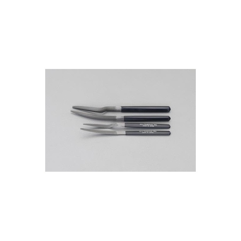• Set Contents: Set of 4; Semicircular, Crank Type (8.5 x 12 x 3.8 mm); Semicircular, Crank Shape (7.3 x 7.3 x 2.5 mm); Semicircular, Boat-Type (8.5 x 12 x 3.8 mm); Coarseness: Medium profile; Material: Alloy Tool Steel (SKS-S-S-S-S-S-) 8)^Coating length Total Length: 8.5 inches (215 mm): 3.9 inches (100 mm), Total Length: 7.3 inches (185 mm): 3.1 inches (80 mm)) Uses: For finishing R and correcting