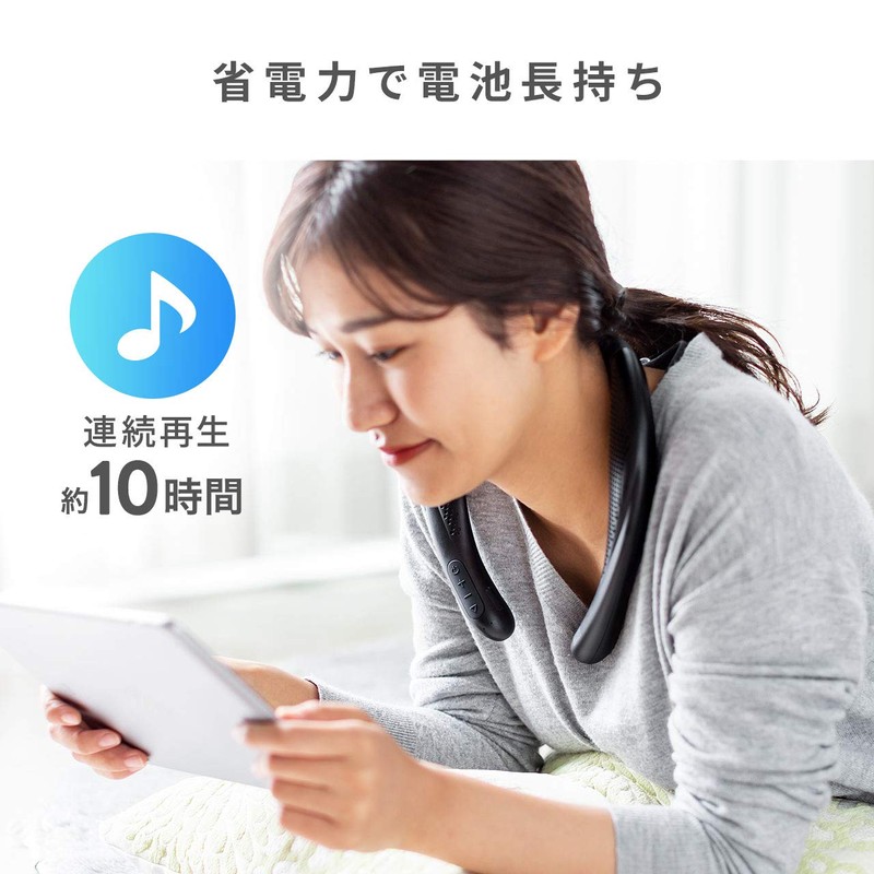 - Wearable speaker that can be worn on the neck and shoulders. You can use it without direct contact with your ears, and you can simply put it on easily. You can wirelessly receive audio from your iPhone or smartphone or Bluetooth transmitter, and enjoy clear audio in your ears. We paid attention to speaker unit position and angle to ensure the sound from the speaker unit is properly reached against your ear