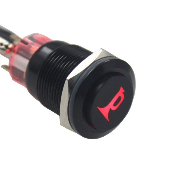 ESUPPORT Black Shell Metal 19mm 12V Car Automotive Red LED Light Horn Speaker Push Button Toggle Switch Momentary Self Reset Socket High Head