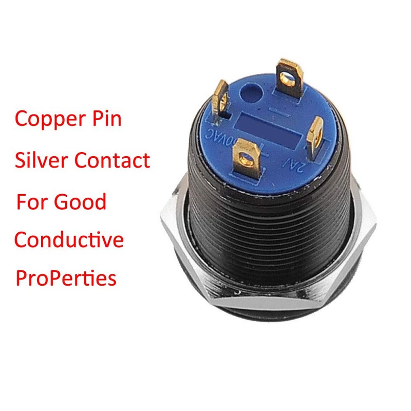 - Tamaño del orificio de montaje: 12 mm, interruptor de 4 pines de cobre. Luz LED azul.