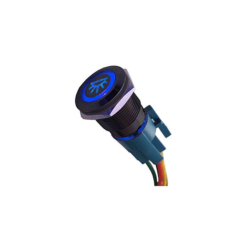 - LED voltage: 12V, Light Color: Blue, Hole size required 19mm, Switch Rating:5A/250VAC, Contact Configuration: 1NO 1NC