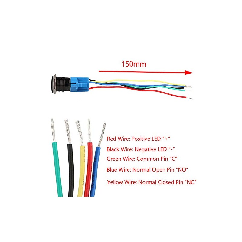 Feature:1. This has a wide range of functions. For example, it can be applied as the switches for the additional equipment inside and outside the vehicle.2. For load under 5 Amp, you do not need a relay with this switch. For load above 5 Amps, we advise you to use of Automotive Relay3. Easy setup. All you need is a 19mm hole and the switch will sit in nicely.4. With waterproof rubber ring, have good performance at waterproof and dust-proof.5. Universal fit all 12V Car SUV truck conversion Van RV Boat Yatch.Specification:1. Thread depth: 5/8" (16mm)2. Head diameter: 7/8" (22mm)3. Mounting hole size: 3/4" (19mm)4. Depth inc contacts: 1.5" (38mm)5. Switch combination: 1NO1NC6. Operation types: Latching7. Switch rating: 5A/250VAC, 5A/30VDC8. LED rating: 15mA, AC/DC 12VPackage Include:1 X Blue LED Push Switch1 X Plug