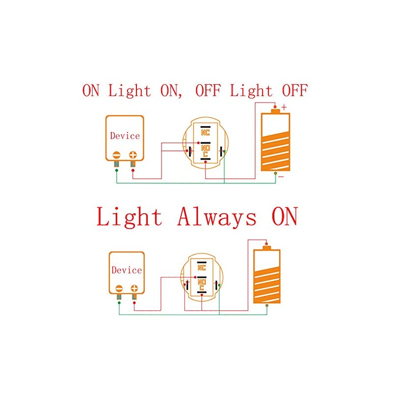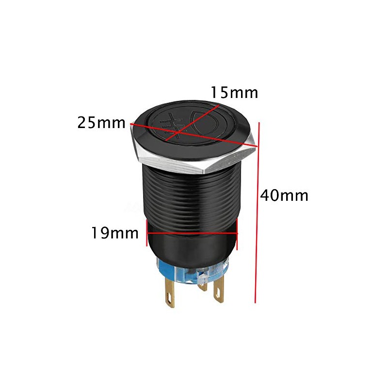 Feature:1. This has a wide range of functions. For example, it can be applied as the switches for the additional equipment inside and outside the vehicle.2. For load under 5 Amp, you do not need a relay with this switch. For load above 5 Amps, we advise you to use of Automotive Relay3. Easy setup. All you need is a 19mm hole and the switch will sit in nicely.4. With waterproof rubber ring, have good performance at waterproof and dust-proof.5. Universal fit all 12V Car SUV truck conversion Van RV Boat Yatch.Specification:1. Thread depth: 5/8" (16mm)2. Head diameter: 7/8" (22mm)3. Mounting hole size: 3/4" (19mm)4. Depth inc contacts: 1.5" (38mm)5. Switch combination: 1NO1NC6. Operation types: Latching7. Switch rating: 5A/250VAC, 5A/30VDC8. LED rating: 15mA, AC/DC 12VPackage Include:1 X Red LED Push Switch1 X Plug