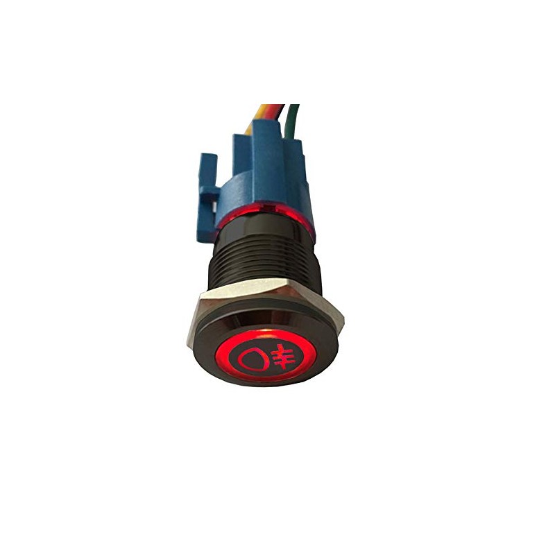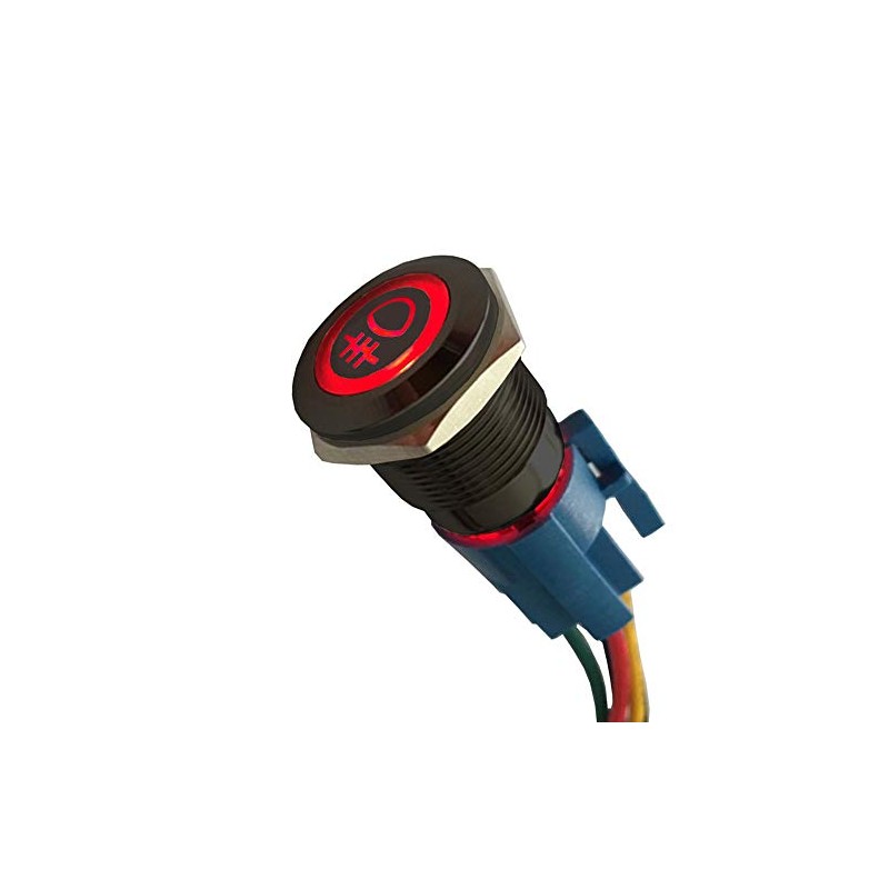 ESUPPORT ESUPPORT 12V Car Vehicle Red LED Light Rear Fog Push Button Metal Toggle Switch Socket Plug Wire Latching 19mm Balck Shell