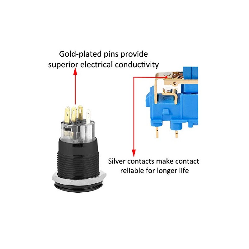 - Latching type: push it on, push it again off, Silver contacts and Gold plated terminal for good conductive properties.