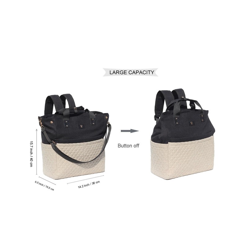 - ❤ 3-in-1 Tote Bag, Backpack, and Crossbody -- Dimensions: 13.8"L x 6"W x 13"H, with a capacity of 20L. Easily convert from a tote to a backpack by storing the shoulder straps in the back pocket. The adjustable padded shoulder straps and tote handles are designed to fit most users. Featuring a stylish designer print with a unique floral pattern, this diaper bag is both chic and functional.