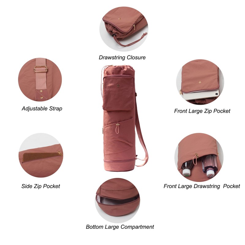ESVAN Yoga Mat Bag with Multi Pockets Drawstring Yoga Mat Carrier Pilates Exe...