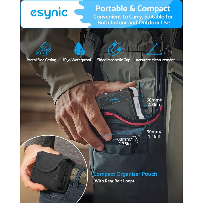 eSynic Digitaler Winkelmesser Neigungsmesser Laser Wasserwaage 4-seitigem Magnetwinkelmesser, 4 * 90° Messbereich, 0,05° Auflösung, Wiederaufladbar mit USB-C, Für Holzarbeiten und Bauprojekte