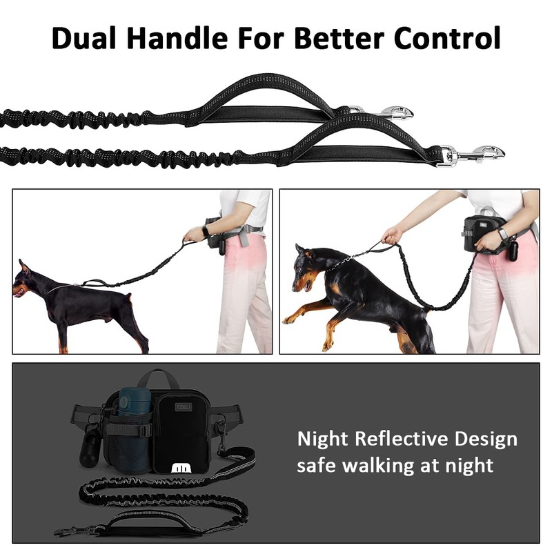 ETACCU Hands Free Dog Leash with Phone Pouch, Water Bottle Holder - Adjustable Waist Belt 19-38 Inch Belt Leash for Running, Reflective Shock Absorbing 37"-54" Extendable