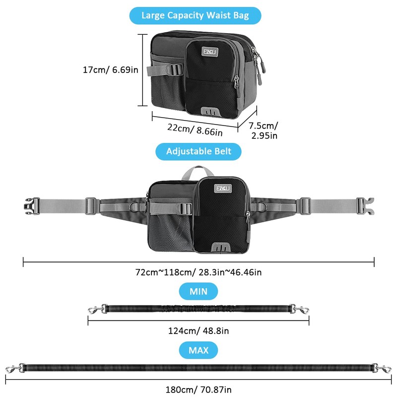 - ✔【Convenience and Safety in Car】- The dog leash fanny pack is equiped with a dog car harnesses when you are driving a car, your pet will be safe on the seat with the seat belt for car. Put your phone, water bottle, keys or else into the waist pack and enjoy music while running.