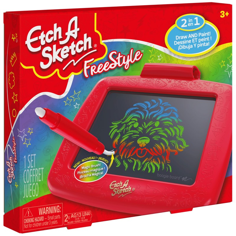 - DRAWING PAD FOR KIDS: Etch A Sketch Freestyle is for ages 3 and up and makes a great gift for birthdays, holidays and more. Includes 2 LR44 batteries. Draw and paint with Etch A Sketch Freestyle!