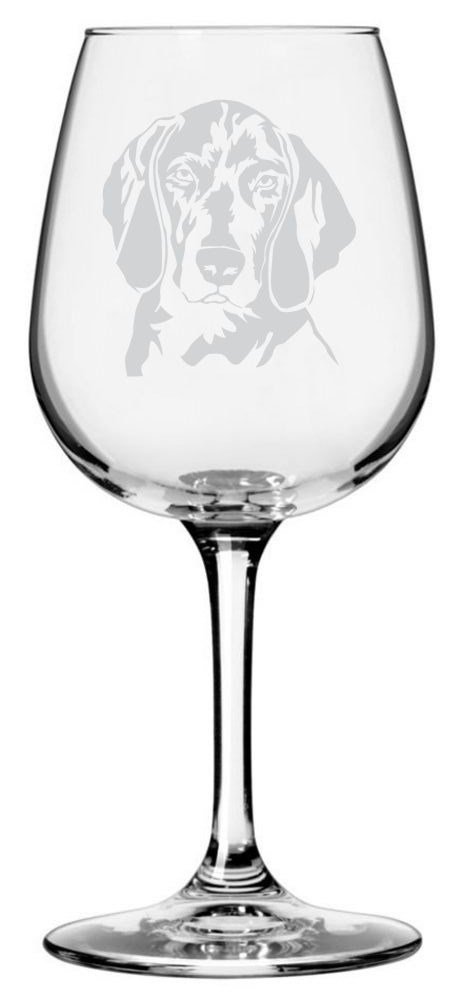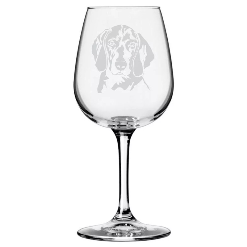This is a high quality wine glass etched with a beautiful dog design.