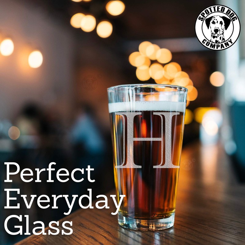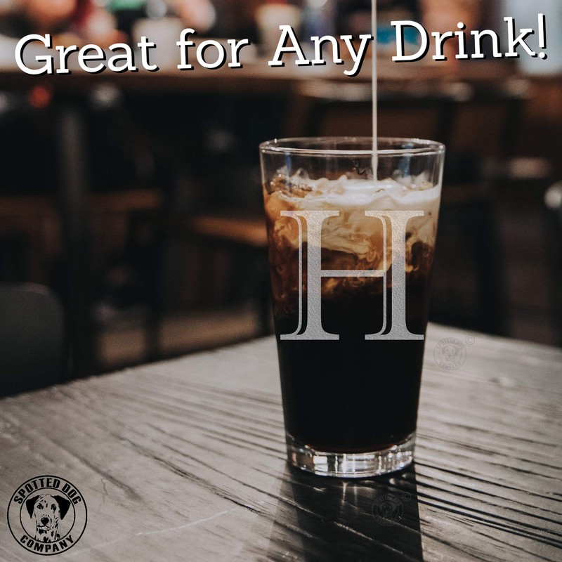 Etched Monogram 16oz Pint Glass for Beer or Soda (Letter H)