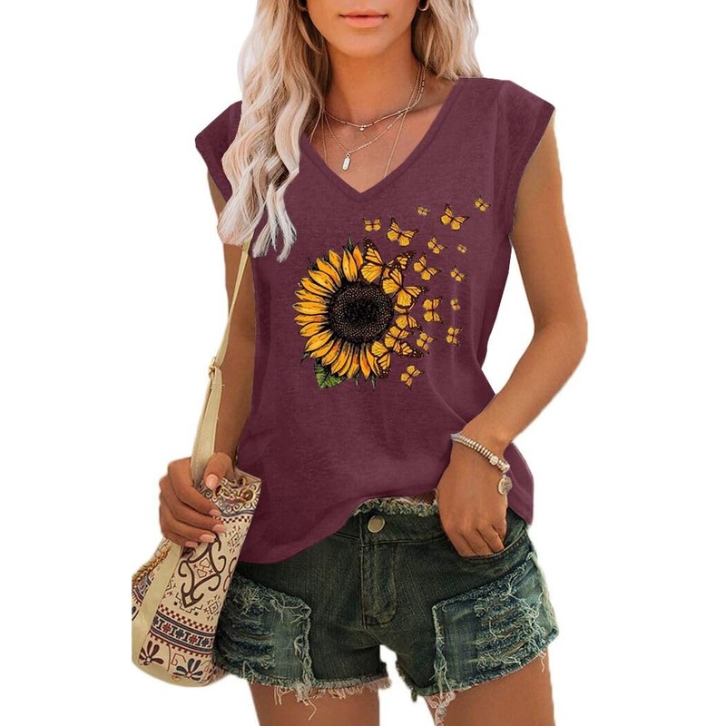 - Designs: Casual V Neck Tank Top, Cap Sleeve, Solid Color,Cute Funny Printed Summer tops. Trendy And Elegant, The Best Gifts For Women!