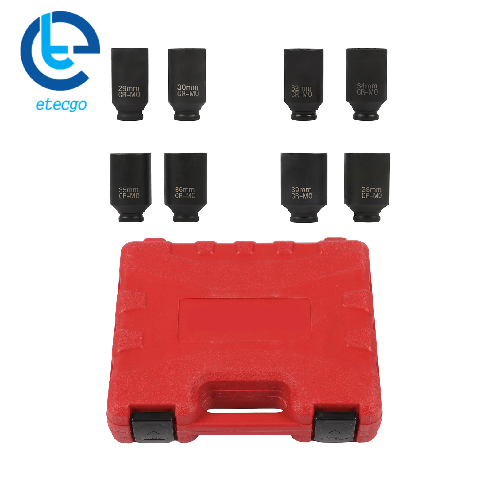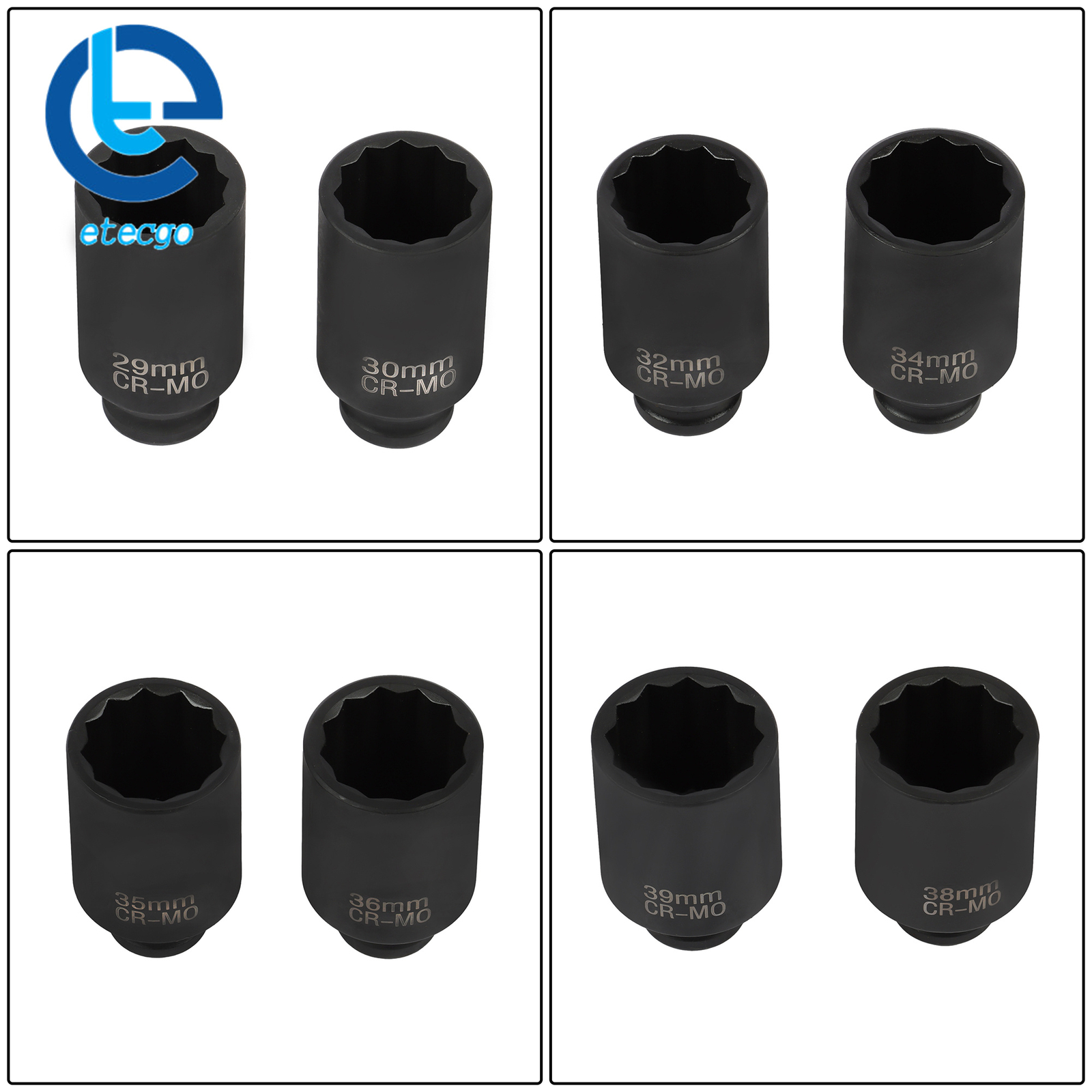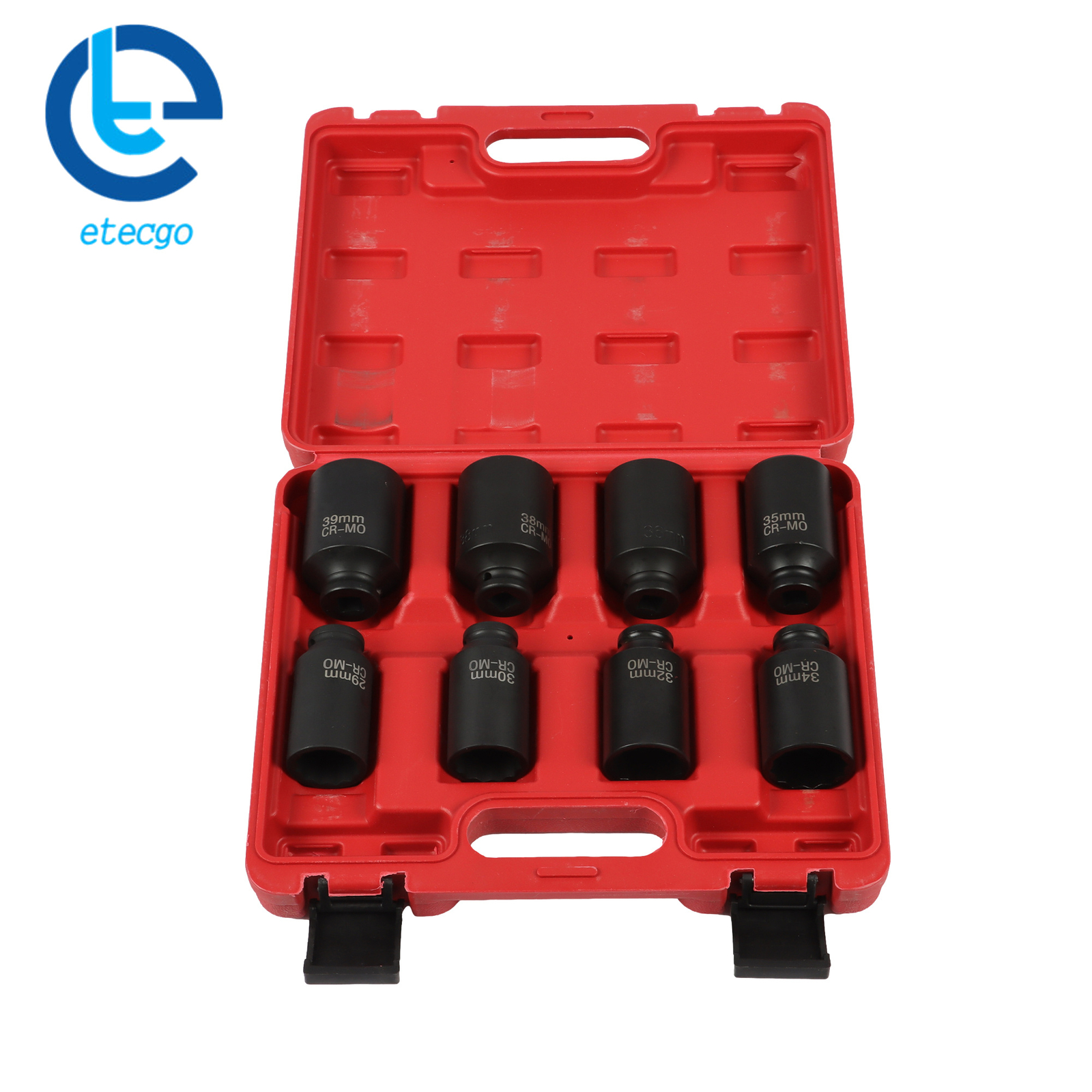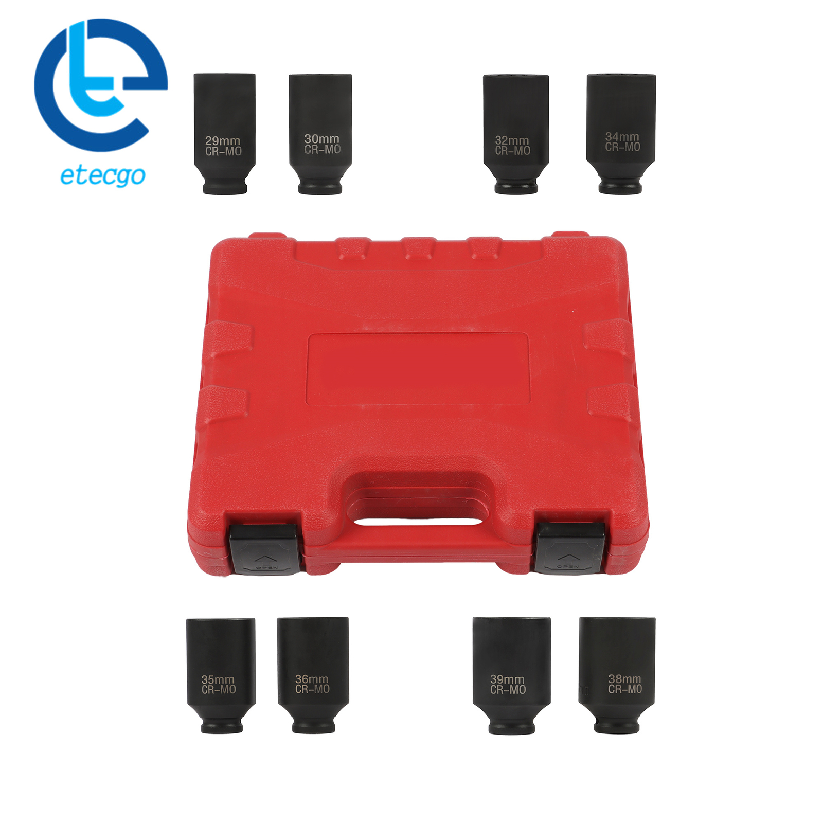 etecgo 1 Set 1/2" Drive Deep Spindle Axle Nut Impact Socket Set 8PCS 2 Point
