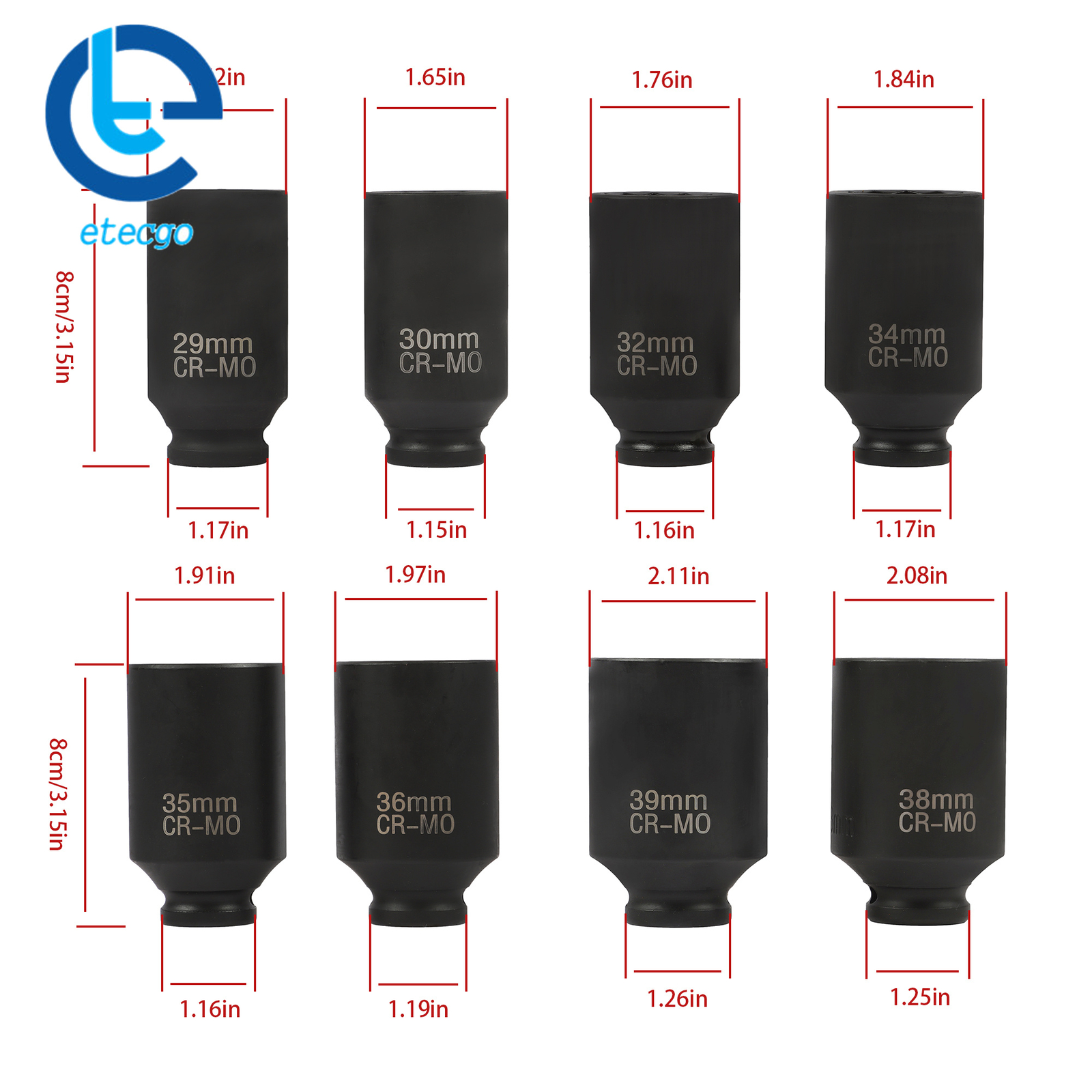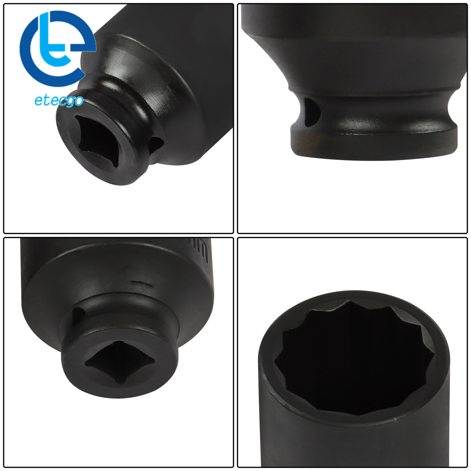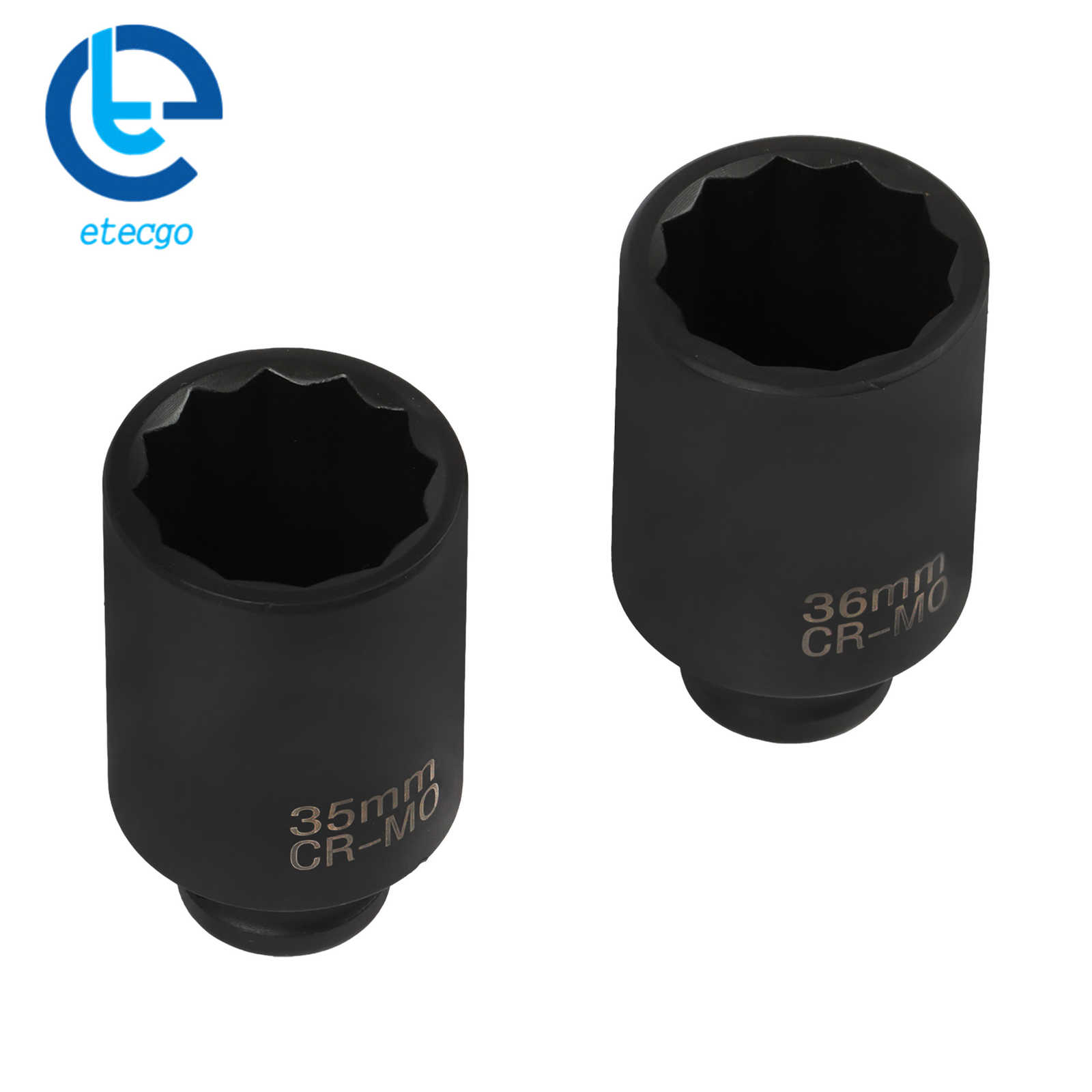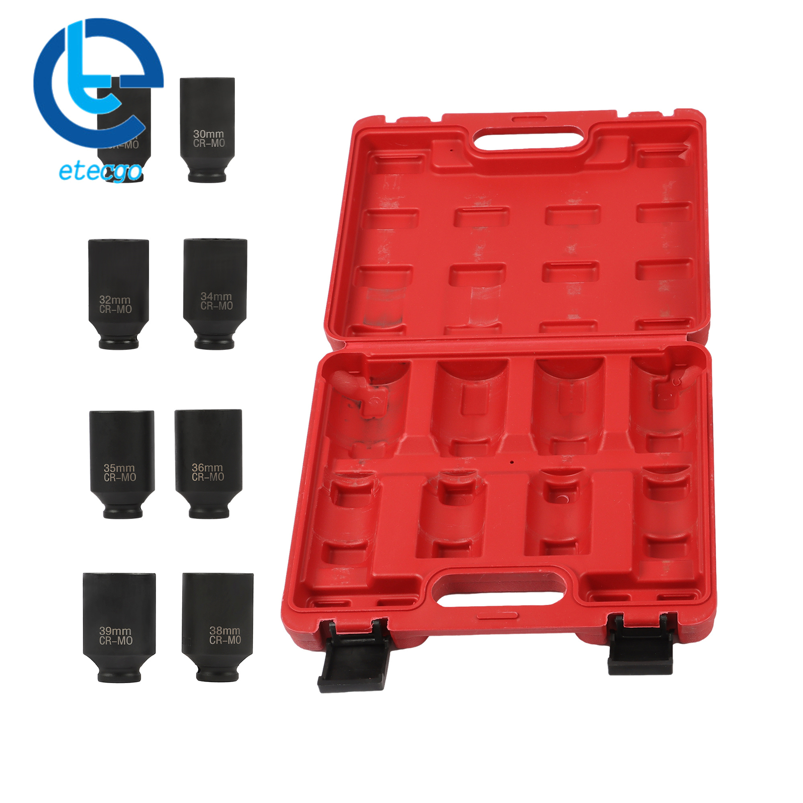 etecgo 1 Set 1/2" Drive Deep Spindle Axle Nut Impact Socket Set 8PCS 2 Point