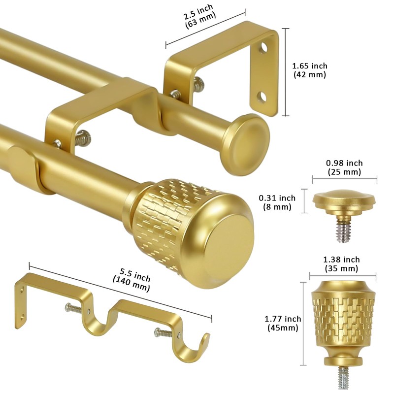 eTeckram 5/8" Double Curtain Rod with Vieve Finials (Gold, 84"-120")