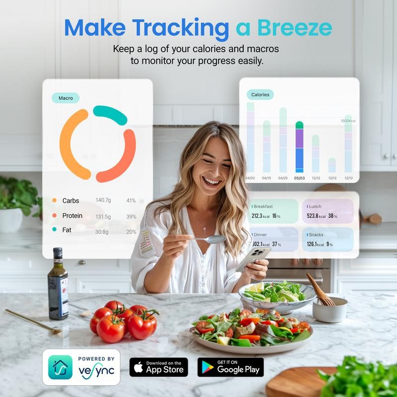 - Etekcity Food Nutrition Scale & Body Weight Scale Healthcare Fitness Accurate Weighing Vesync App