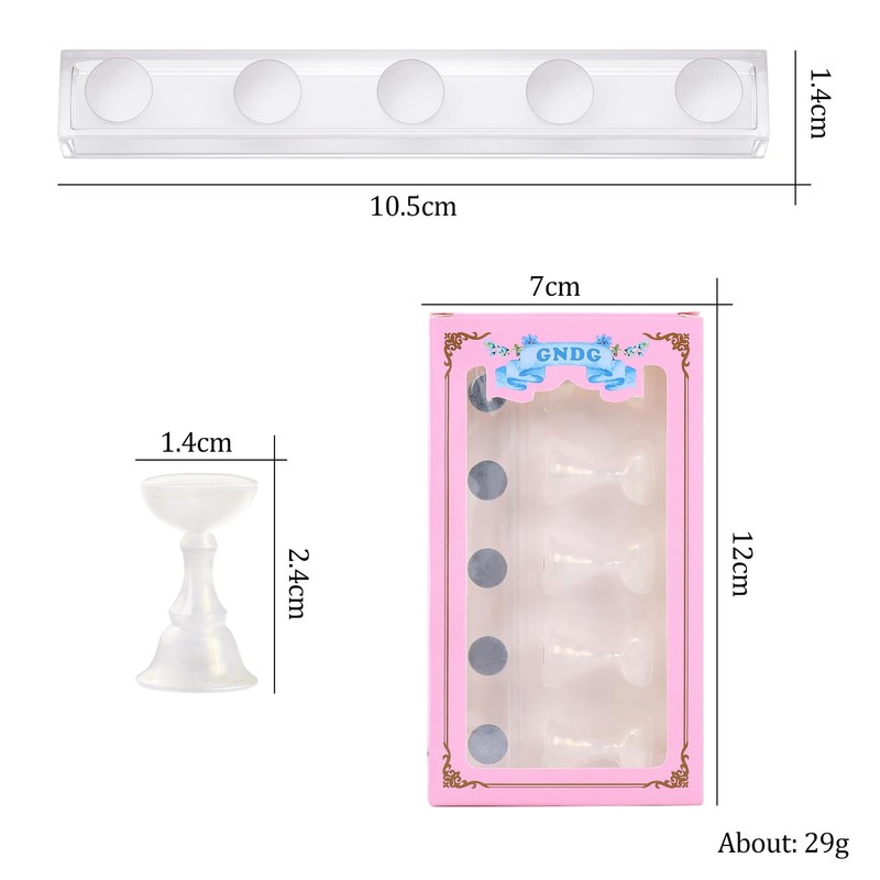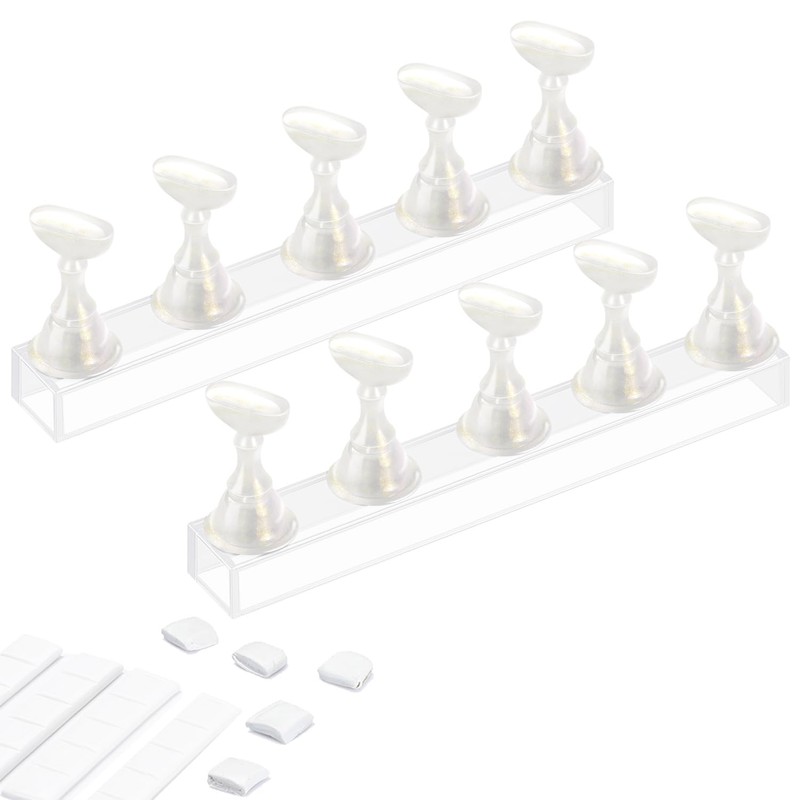 - What you will get: You will get 2 sets of acrylic nail polish display stands and Reusable Adhesive Putty Clay, (each set includes 1 nail stand base and 5 nail exercisers), enough to meet your nail training needs. The nail polish display stand for practice is made of high-quality materials, strong and durable enough for your daily use