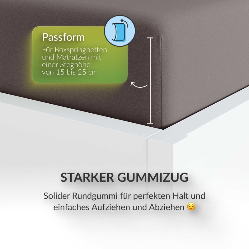 The microfibre bed sheets from the etérea comfort series are made from 100% polyester. They have a strong elasticated edging all-round that adapts perfectly wrinkle-free to your mattress, thanks to its optimal bed cut. Thanks to the high-quality fine polyester yarn, the bed sheet has a soft and warm surface. The microfibre fitted sheet offers you a pleasant and restful sleep. The fitted sheets are Öko-Tex 100 certified and pre-shrunk, which provides further protection against shrinkage and wear.