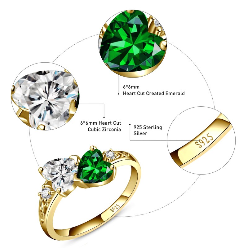 - 💕Gemstone Combination: The statement ring features a captivating combination of gemstones, designed for people in love with each other to symbolize the unity between each other, inlay 6*6 mm heart-cut Cubic Zirconia paired with a 6*6 mm heart-cut created emerald meticulously set in a secure 3-prong setting. Side of the ring is made of Celtic Design, customize your needs with our Birthstone Rings, a symbol of everlasting love designed to captivate hearts and stand the test of time.