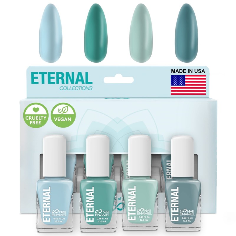 Eternal Green Nail Polish Set for Women (MINDFULNESS) - Light Blue Nail Polish Set for Girls - Long Lasting & Quick White Nail Polish for Home DIY Manicure & Pedicure - Made in USA, 13.5mL (Set of 4)