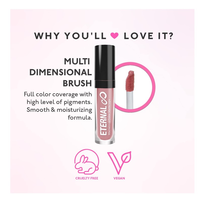- HIGH IMPACT LIPS FOR YOUR LOOK: Eternal Cosmetics has created a highly pigmented Matte Lips liquid lipstick for all fashion and color trendy lovers. Choose the color that will match and enhance your outfit.