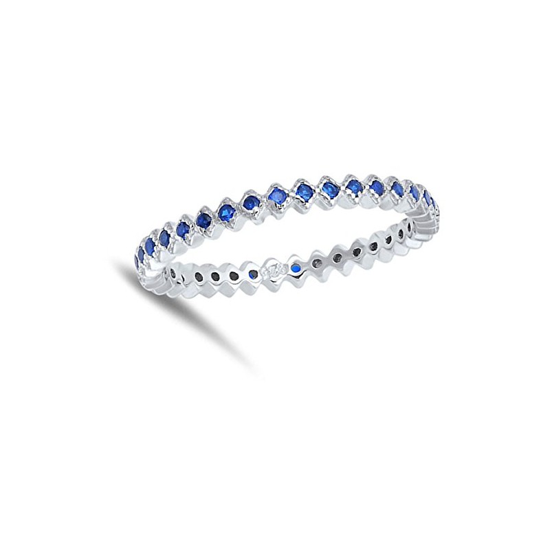 Eternity Blue Simulated Sapphire Stackable Ring .925 Sterling Silver Band Size 6