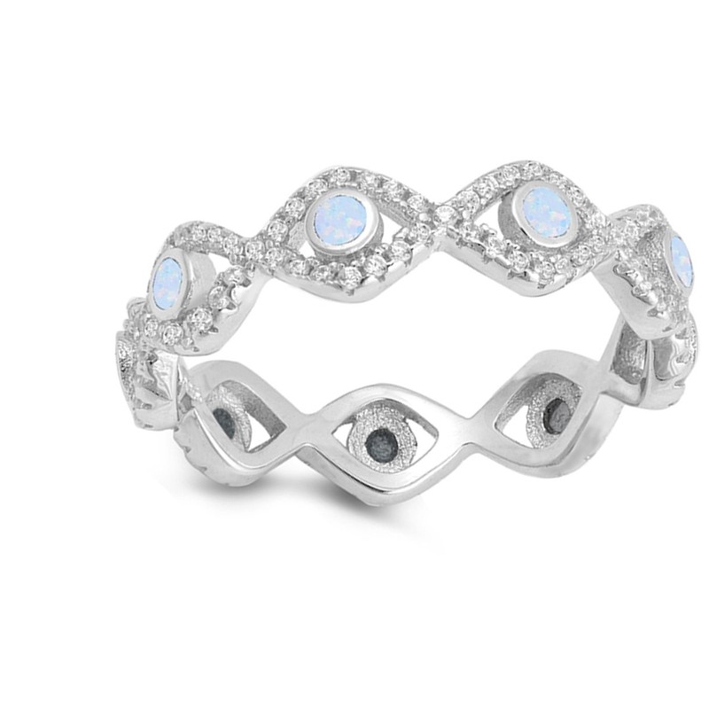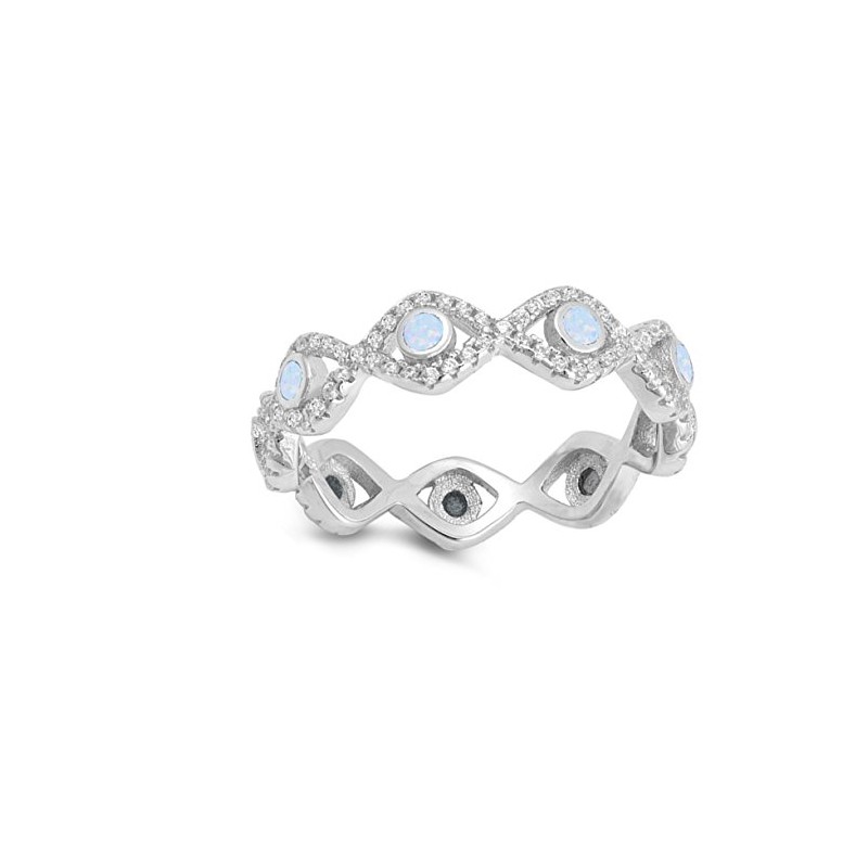 Eternity Evil Eye White Simulated Opal Infinity Ring Sterling Silver Band Size 6