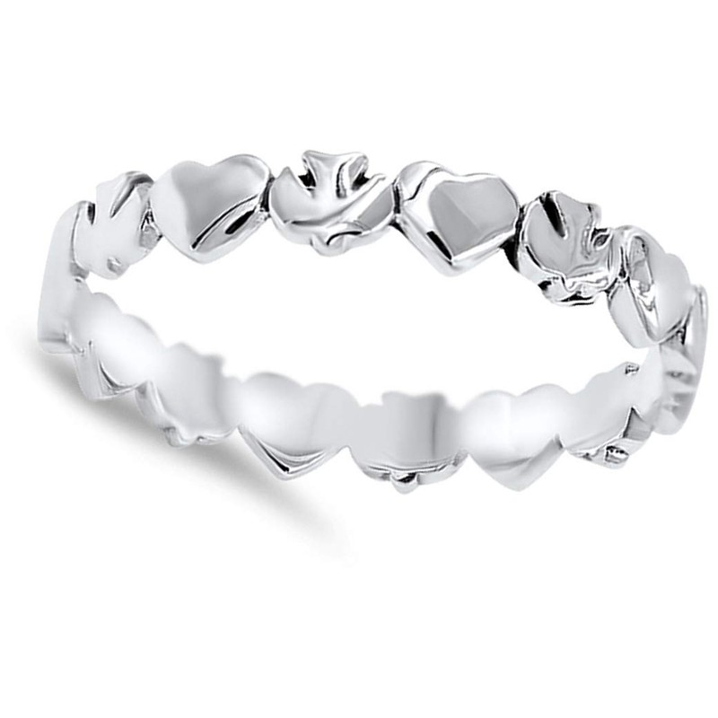Eternity Heart Dove Christian Stackable Ring 925 Sterling Silver Band Size 7