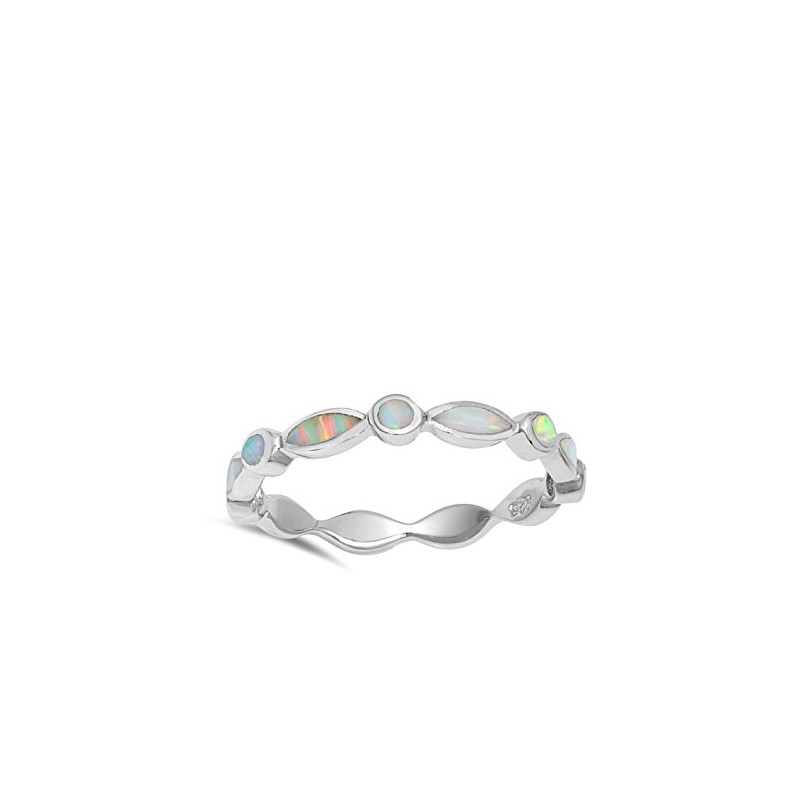 Eternity White Simulated Opal Stackable Ring New .925 Sterling Silver Band Size 8