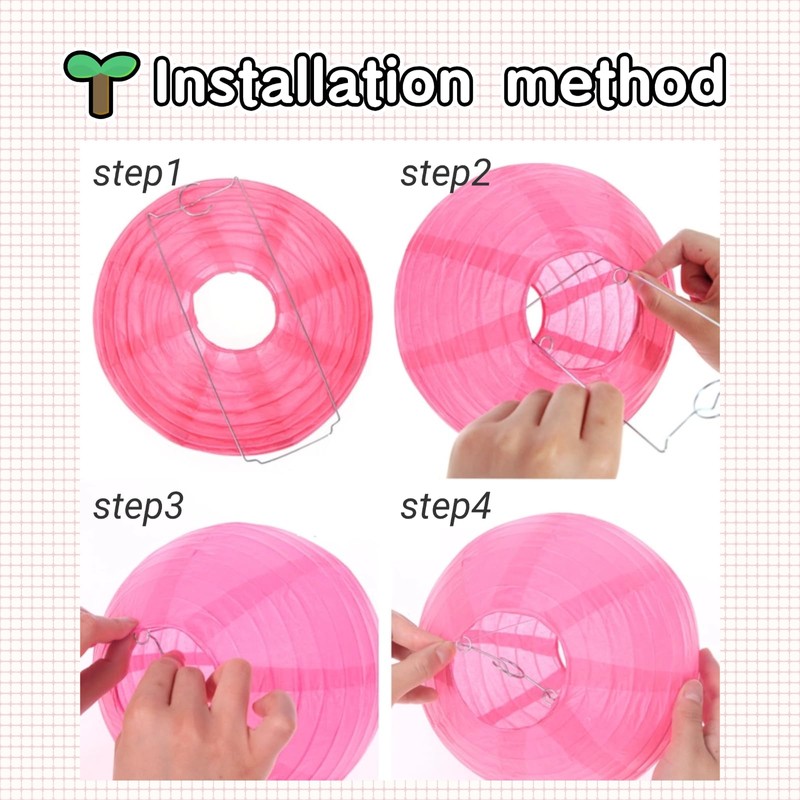 - 3.Simple 3-Step Assembly:① Unfold the paper lantern② Insert the metal support frame③ Secure the lantern onto the frame;No additional accessories required;Collapsible for easy storage;Frame provides freestanding display option