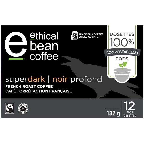 Ethical Bean Coffee Superdark Single Serve 100% Compostable Coffee Pods, 132g