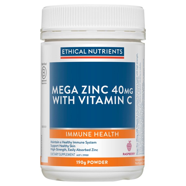 Ethical Nutrients Mega Zinc 40mg with Vitamin C Raspberry 190g
