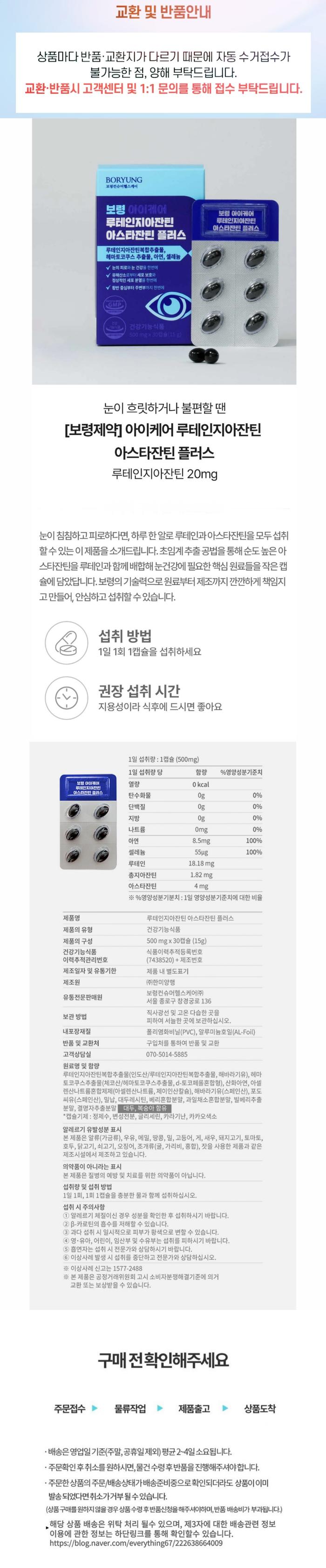 ething Boryeong Eye Care Lutein Zeaxanthin Astaxanthin Plus 30 Capsules 6 Boxes (6 Month Supply) Eye Health / ething 보령 아이케어 루테인 지아잔틴 아스타잔틴 플러스 30캡슐 6박스 (6개월분) 눈건강