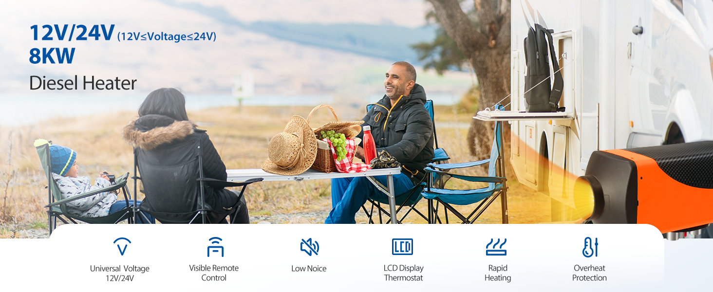 Ethovia 8KW 12-24V Diesel Air Heater LCD Thermostat Quiet NEW Remote Boat Truck Camper