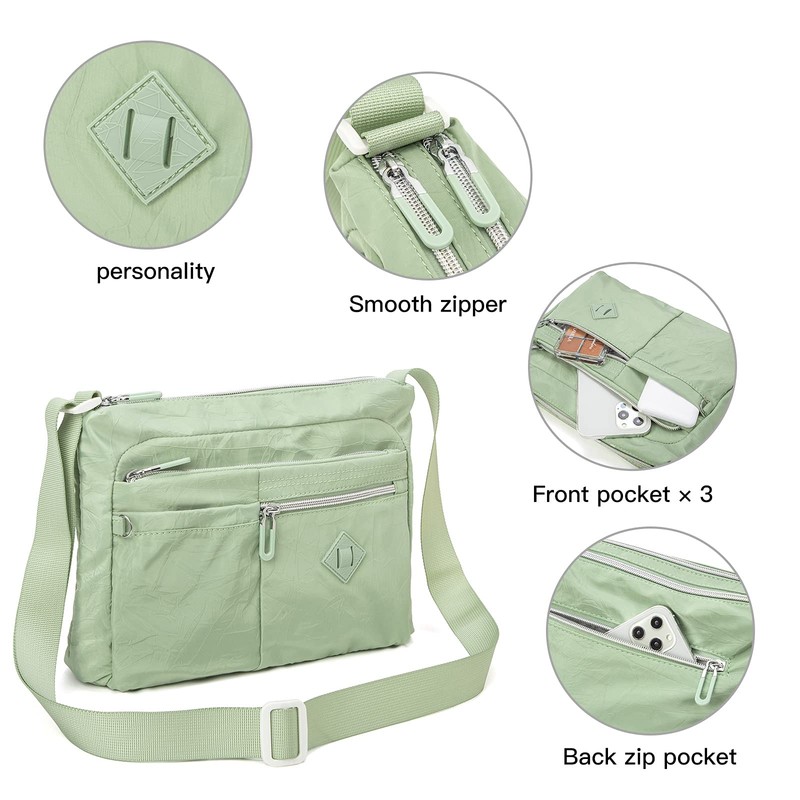 - Esta bolsa cruzada está diseñada con múltiples bolsillos con cierre para un almacenamiento cómodo de varios objetos pequeños: tabletas, carteras, cosméticos, teléfonos móviles, llaves, libros, etc