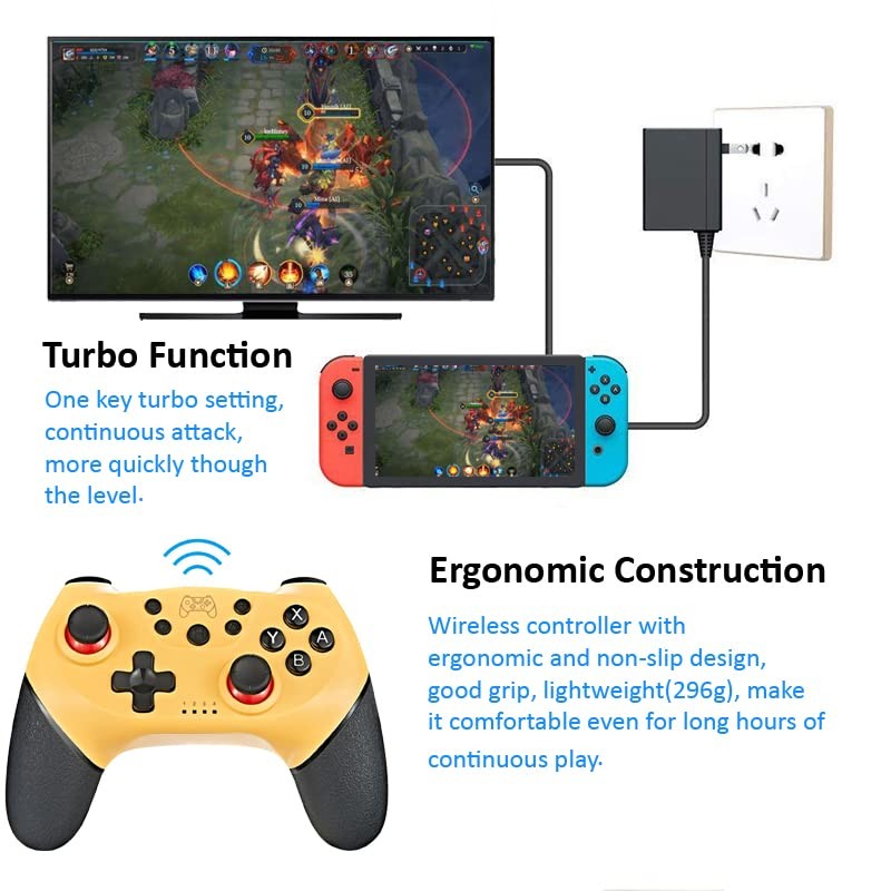 - 🎮Ergonomic Design - Switch pro gamepad with capable of extremely precise control on position, speed and operation, rapid start/stop motion. Combination, curved grip, concave rocker, and reasonable key layout design, ensuring a comfortable operation for you.