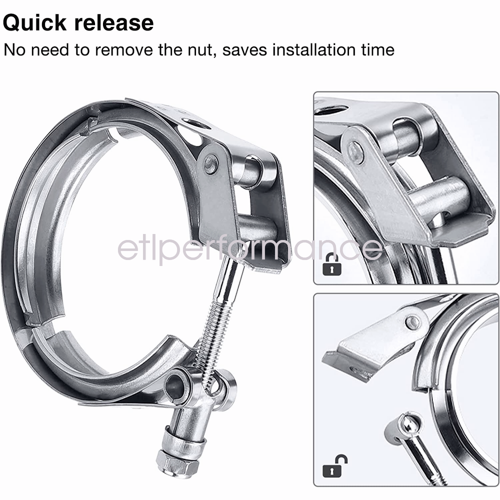 ETL Performance 2Pcs 2.75'' V Band Clamp Stainless Steel 304 For Turbo Downpipe Exhaust Pipe