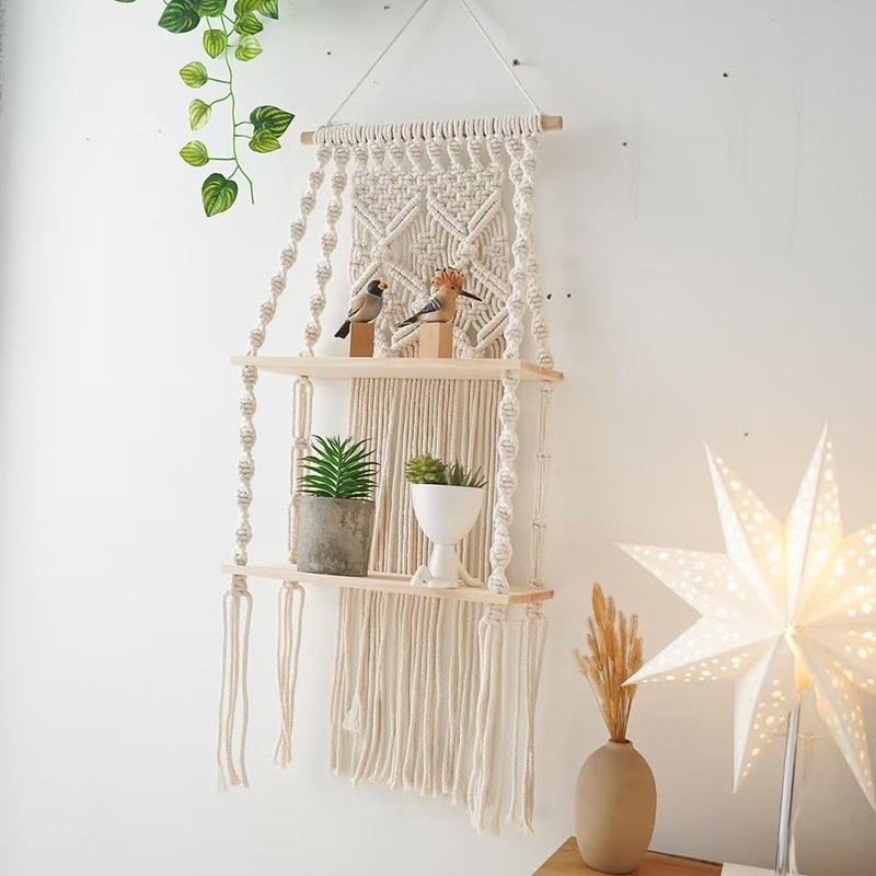 - Perfect wall shelf: our macrame wall shelf for hanging on the wall are 32 x 15 cm double layer large and 75 cm high and can be hung anywhere in the room. Boho wall shelves blend perfectly into the rustic and natural bohemian atmosphere and give your walls a new look