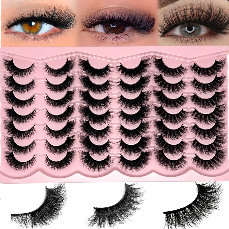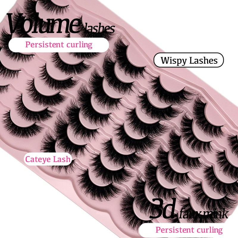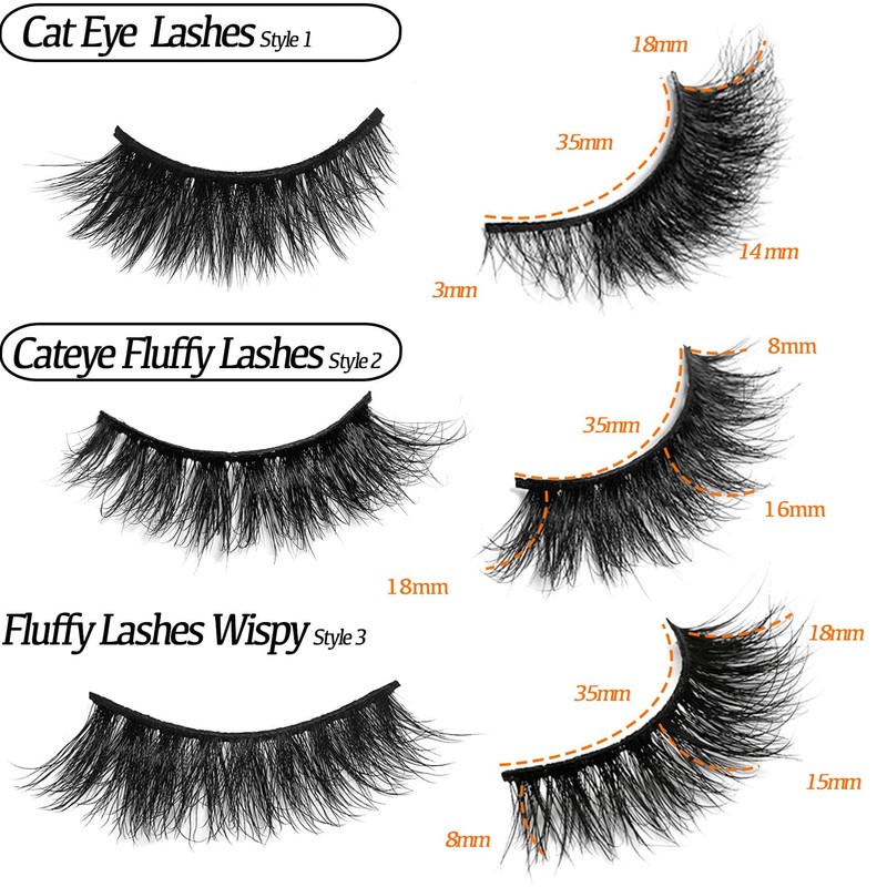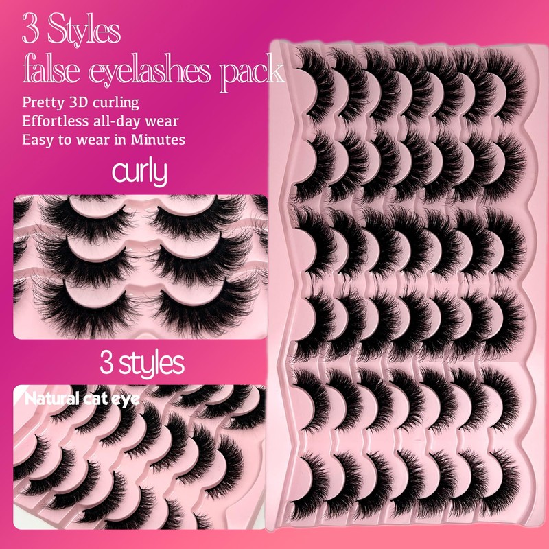 - 3 Styles Eye Lashes Pack:21 pairs lashes pack with cat eye lashes natural look, wispy lashes cat eye and long fluffy lashes.The 3d fluffy lashes design provides a subtle yet striking 3D lashes effect.So your makeup stays fresh from dawn to dusk