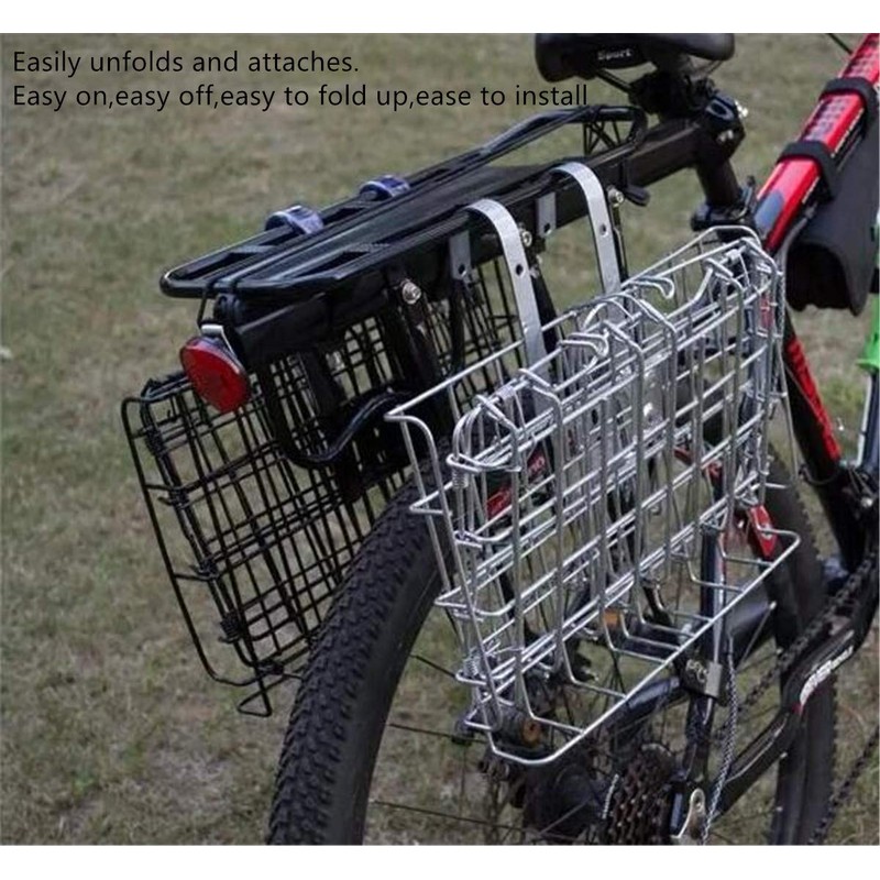 - The basket also fits well on a rear side mount.Easy to fold and hang on to the rear bike rack