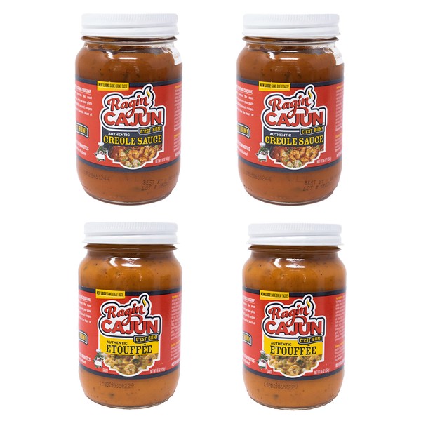Etouffée Sauce (2) & Creole Sauce (2) Fully Cooked Sauces Variety Pack 16 oz Ragin' Cajun