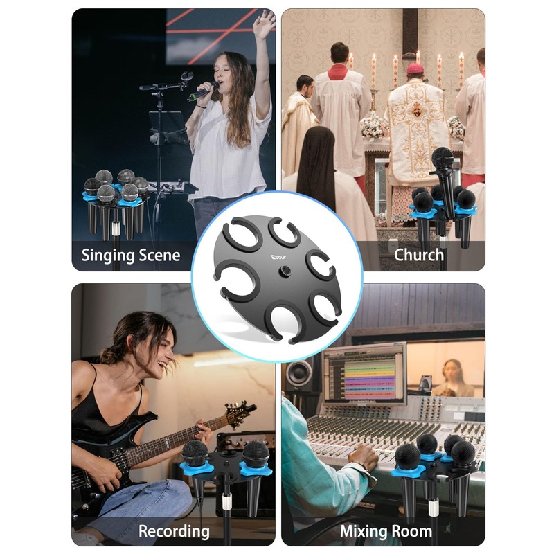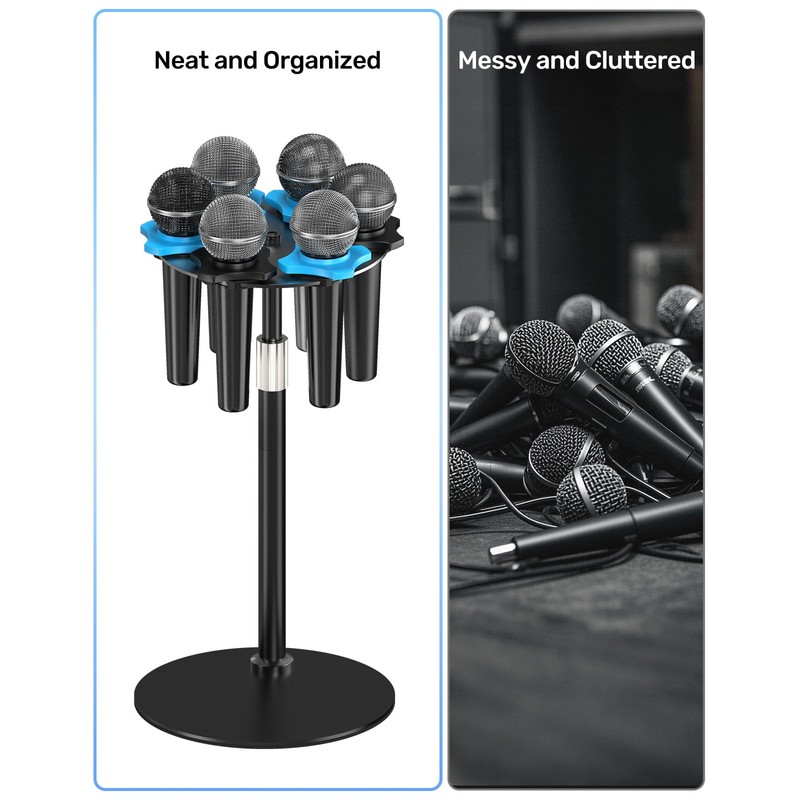 - [Essential Accessory for Musicians] This stand is the perfect solution for performances, home studios, churches, or professional recording setups. It safely holds up to six handheld microphones—whether dynamic, wired, or wireless—making it ideal for musicians, church services, DJs, and karaoke enthusiasts.
