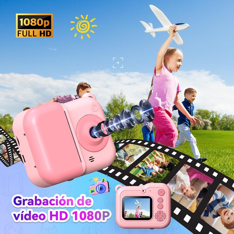 Con impresión instantánea sin tinta, captura fotos y videos en 1080P, e incluye divertidos filtros, stickers y marcos para personalizar cada imagen.