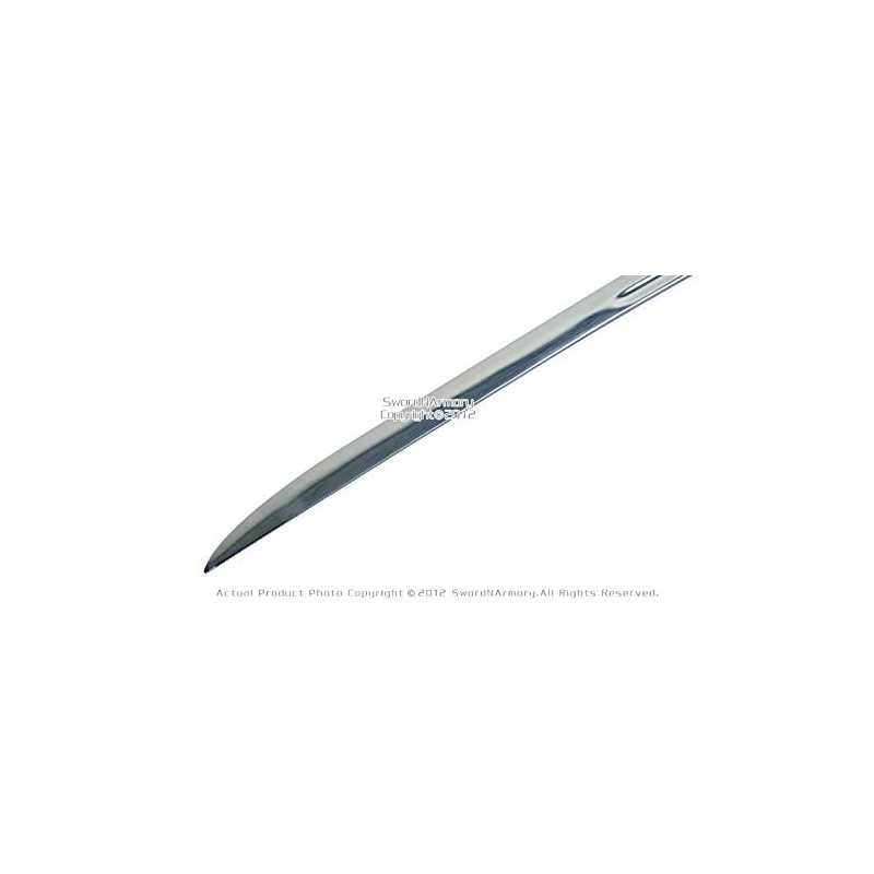- Blade: The blade of the sword has been constructed from 440 Stainless Steel with partial false upper edge. The blade comes slightly sharpened. The acid etching in the blade is deep enough to feel, and finely detailed.